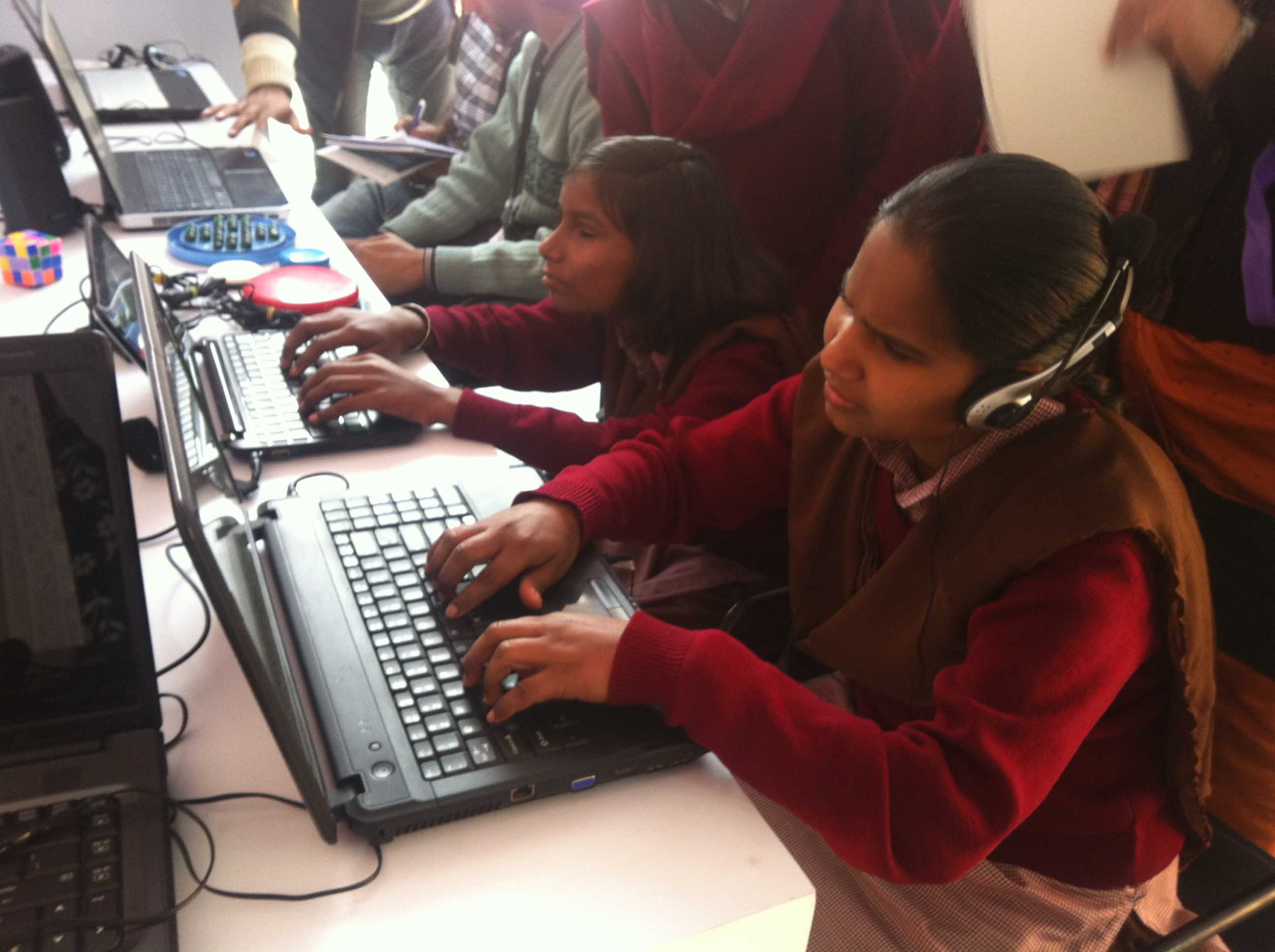 (Image: Blind students enjoying computer games at Techshare India 2012)